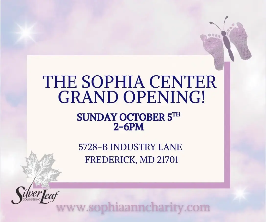 October 5, 2025 – The Sophia Center, Frederick’s first dedicated center for infant loss and perinatal mental health, will celebrate its grand opening on October 5, 2025.  (2p-6p) The Center is home to the newly founded Sophia