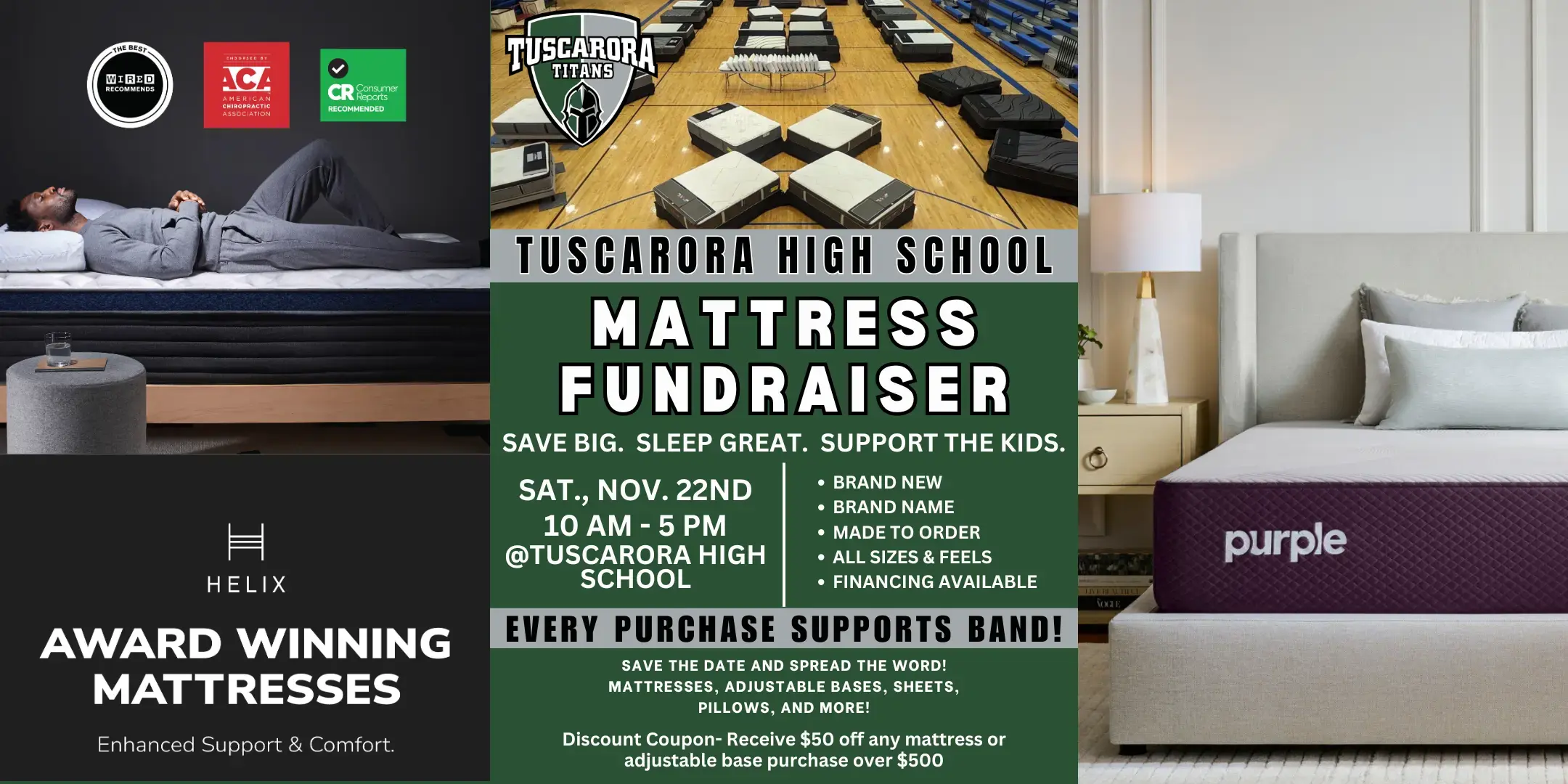 If you or someone you know wants to replace a bed in your home, now is the time! The Tuscarora High School Instrumental Music Program is excited to host a one-day Mattress Fundraiser on Saturday, November 22nd,